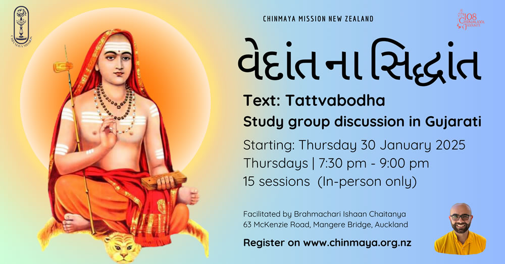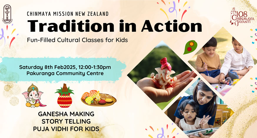 Chinmaya Nikunj Wellbeing & Events Centre, 63 McKenzie Road, Mangere BridgeRegister Join us for a weekly study group dedicated to exploring Chapter 6 of the Shrimad Bhagavad Gita. This chapter, known as Dhyana Yoga or the Yoga of Meditation, delves into the principles of mindfulness, self-discipline, and inner peace. Together, we will unpack its timeless teachings, reflect on their practical relevance, and engage in meaningful discussions to […]
